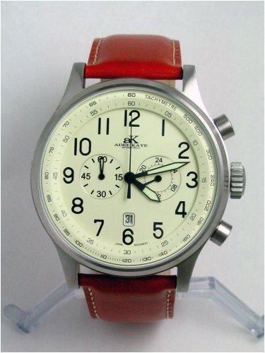 Adee Kaye XXL Icw Flieger Uhr Chronograph Watch Ivory Dial / Brown Strap Rating ,